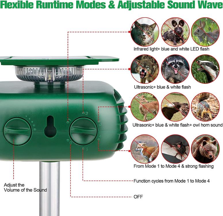 Environmental Factors: The efficacy of these repellers can be influenced by the surrounding environment. Factors such as wind, obstacles, and the layout of the area can impact how well the sound waves travel and reach the targeted animals.